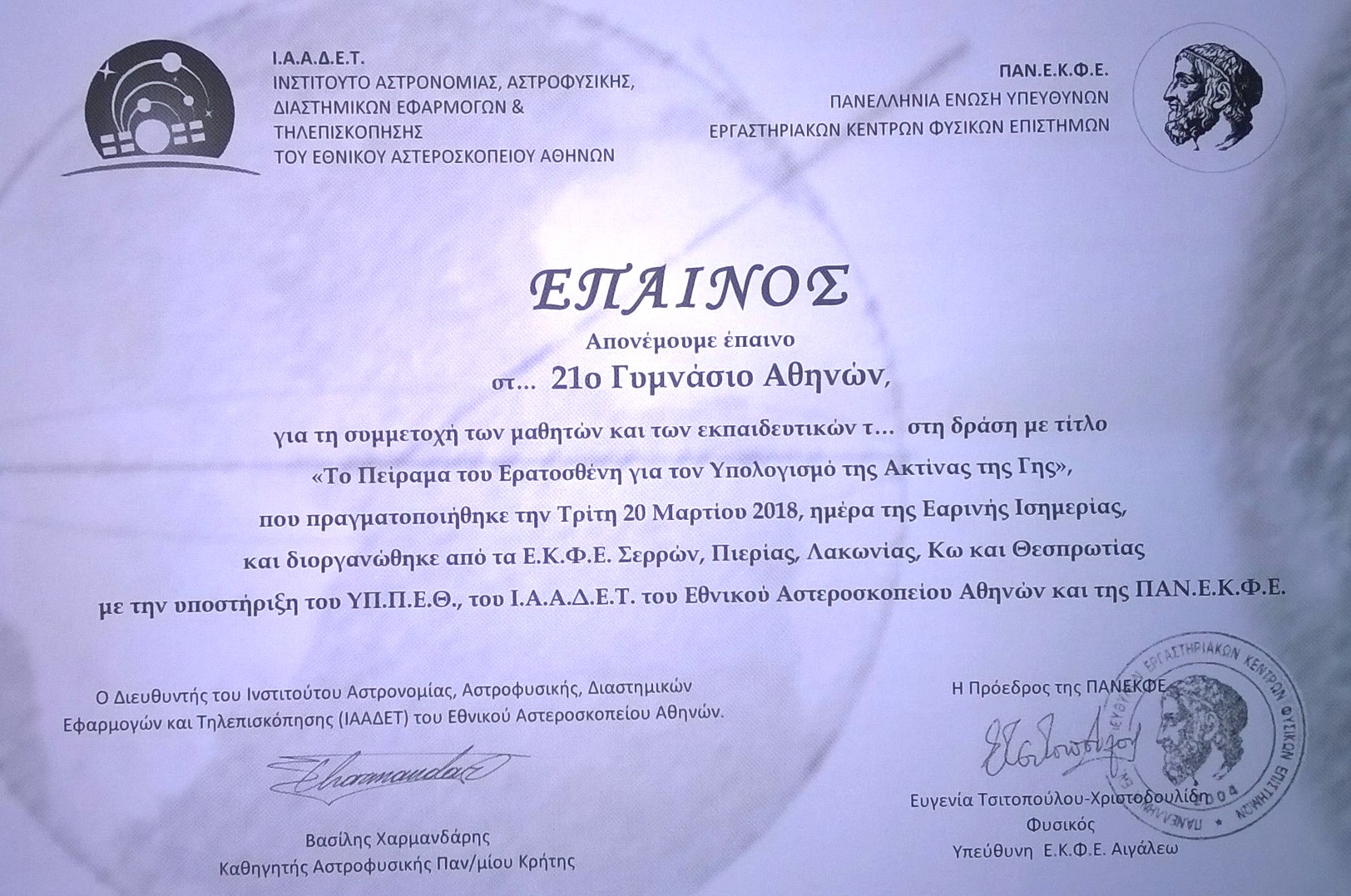 (φέτος 20/3/20 στις 12:33) το πείραμα του Ερατοσθένη.