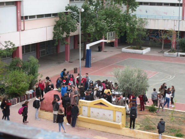 πριν την έναρξη των μαθημάτων, μαζευτήκαμε όλοι μαζί στον προαύλιο