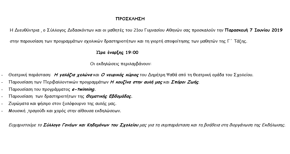 Οργανωτική επιμέλεια: 21ο Γυμνάσιο Αθηνών