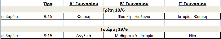 την 5η ώρα της Δευτέρας και την 7η ώρα της Πέμπτης,