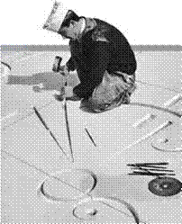Τεχνίτης χαράζει μια από τις μαρμάρινες πλάκες. (1963)